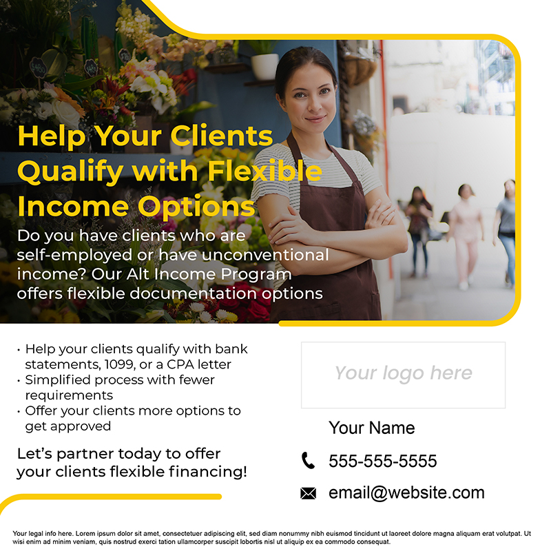 Capture attention and strengthen your relationships with Arc Home’s White Label Flyers! Personalize these powerful marketing tools to showcase the benefits of Non-QM lending and establish yourself as an expert in the market.
